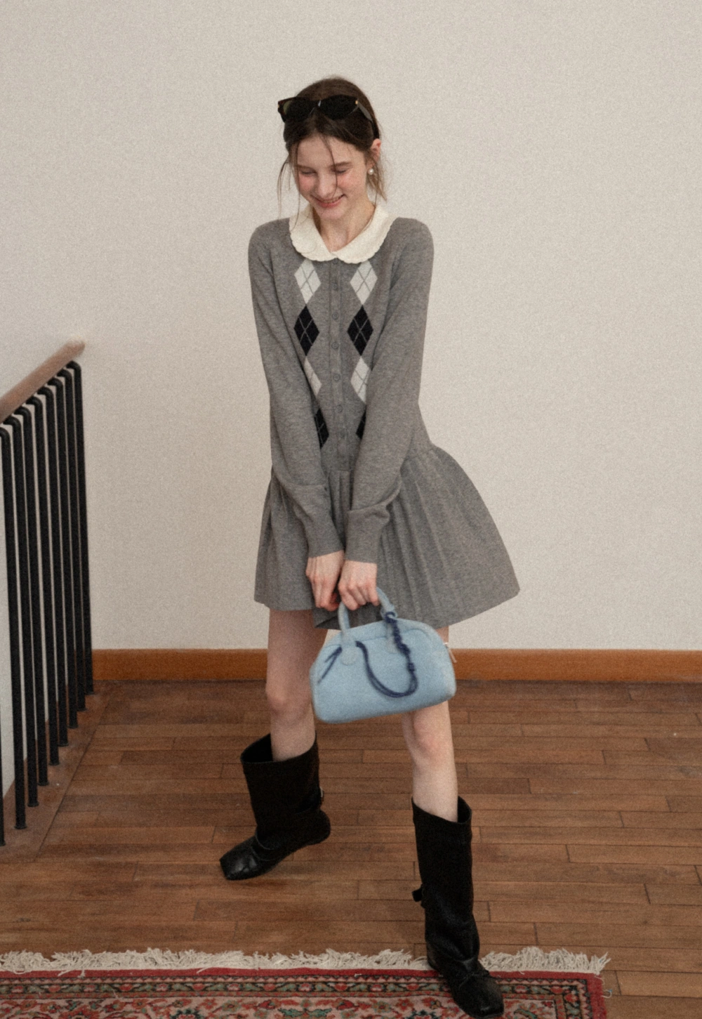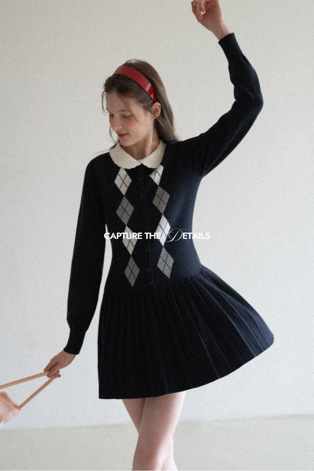 Argyle Knit Dress with Peter Pan Collar