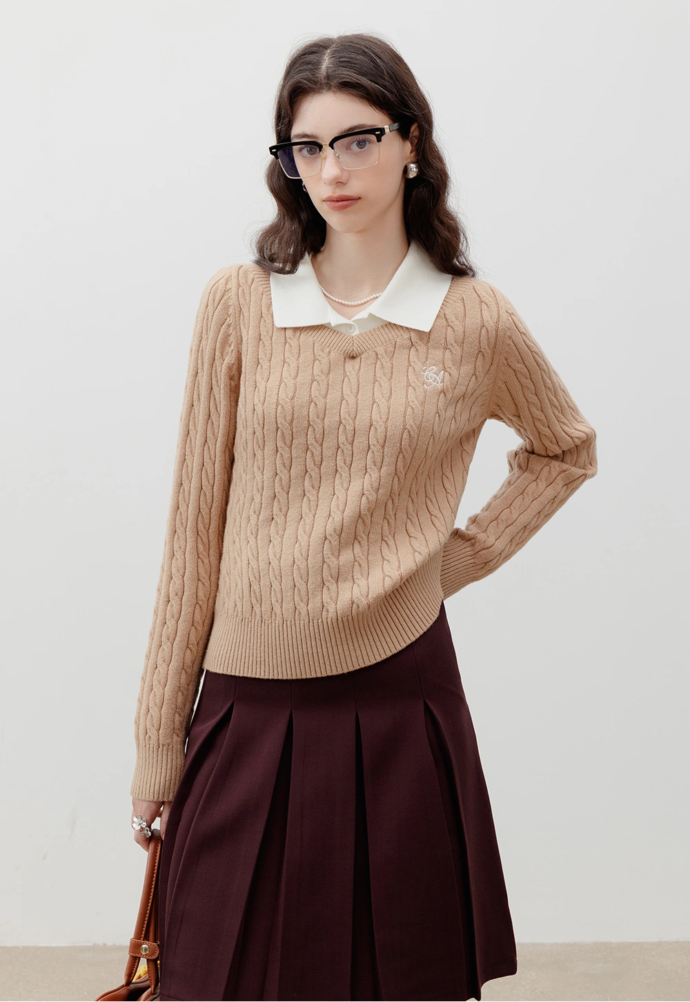 Women's Contrast Collar Cable Knit Sweater