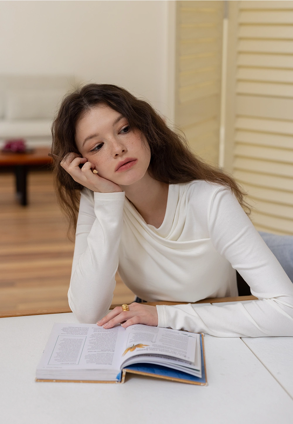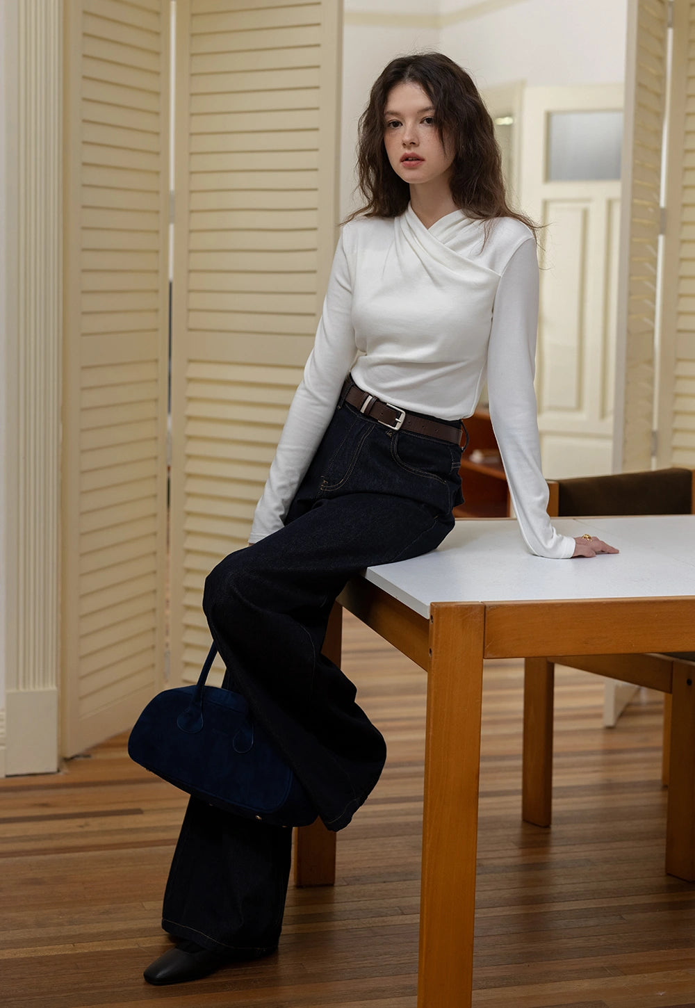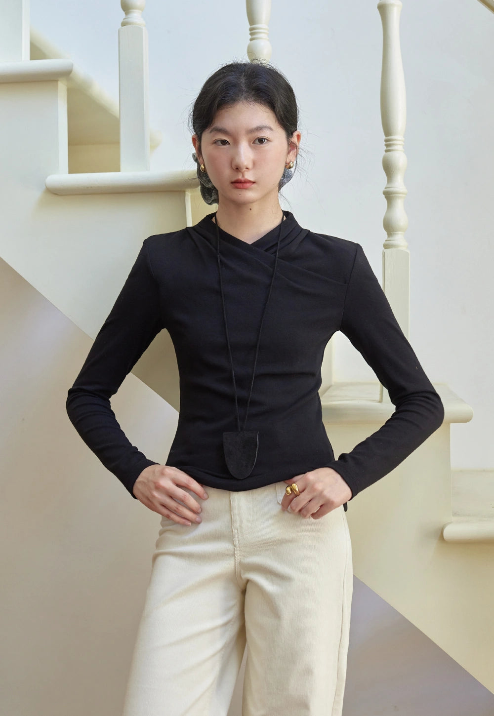 Draped Collar Long Sleeve Top