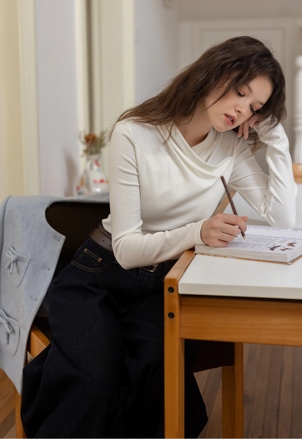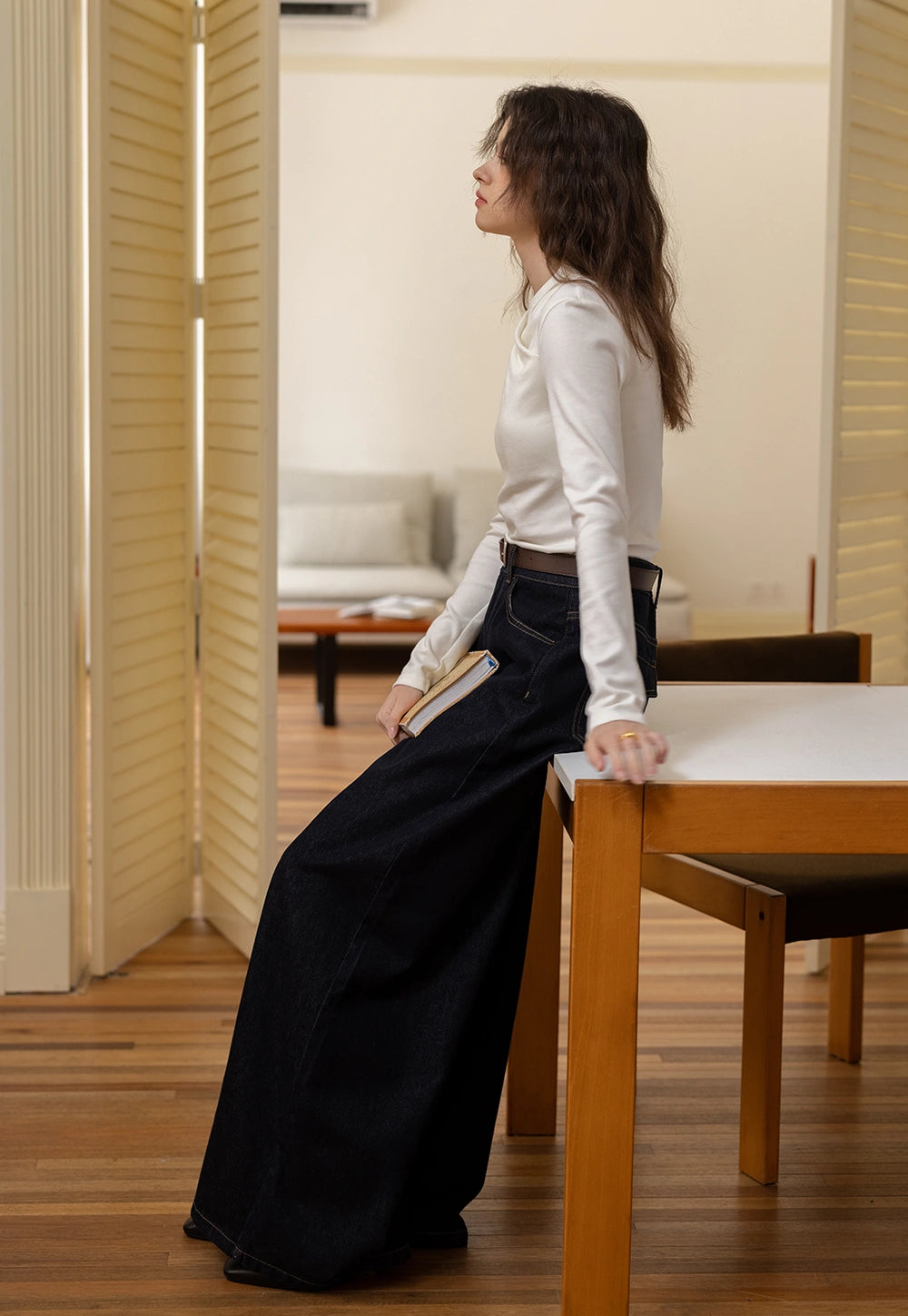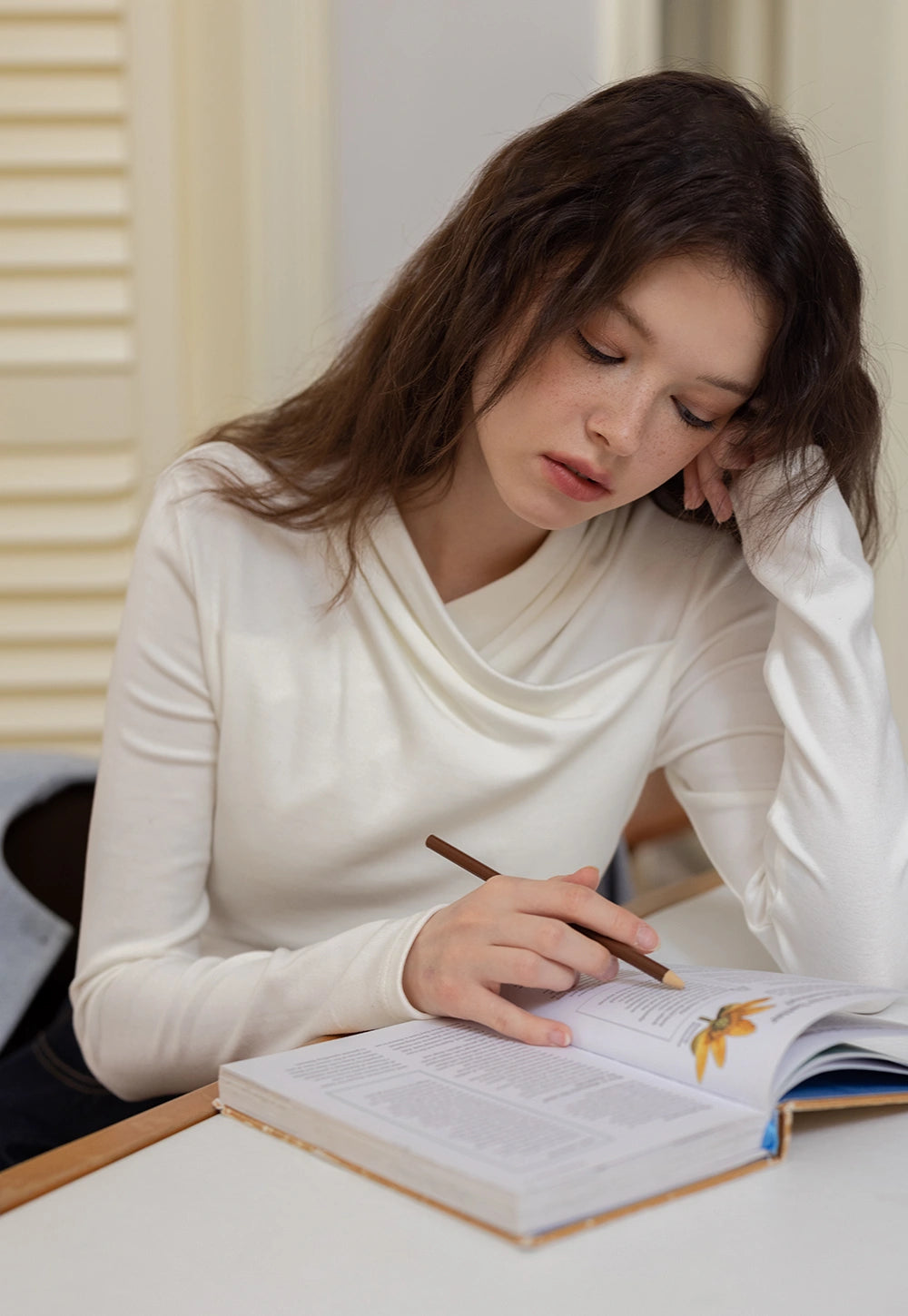 Draped Collar Long Sleeve Top