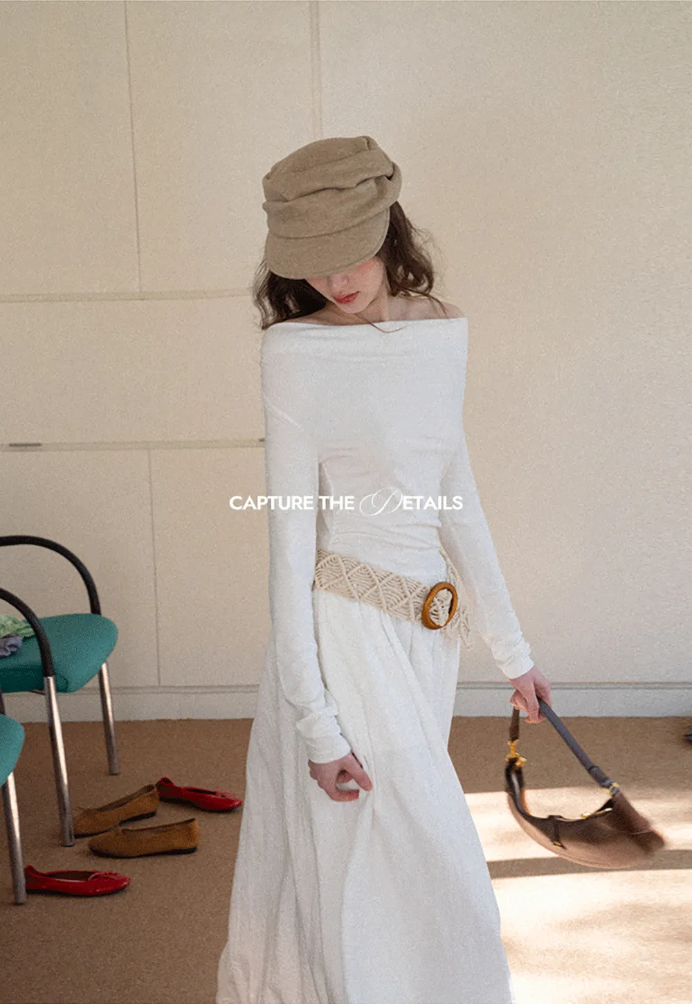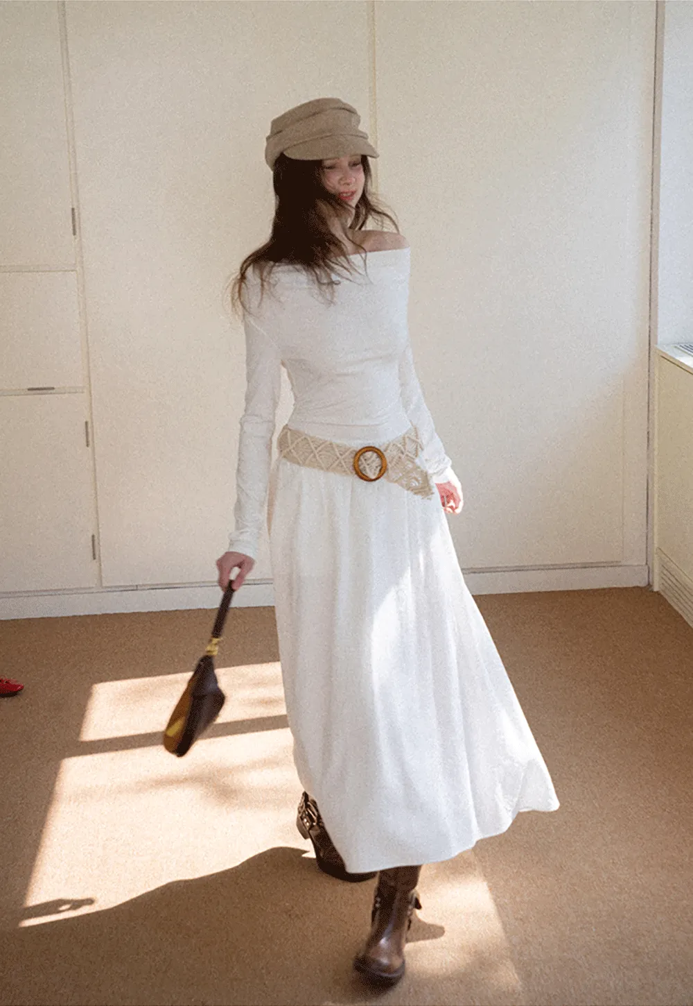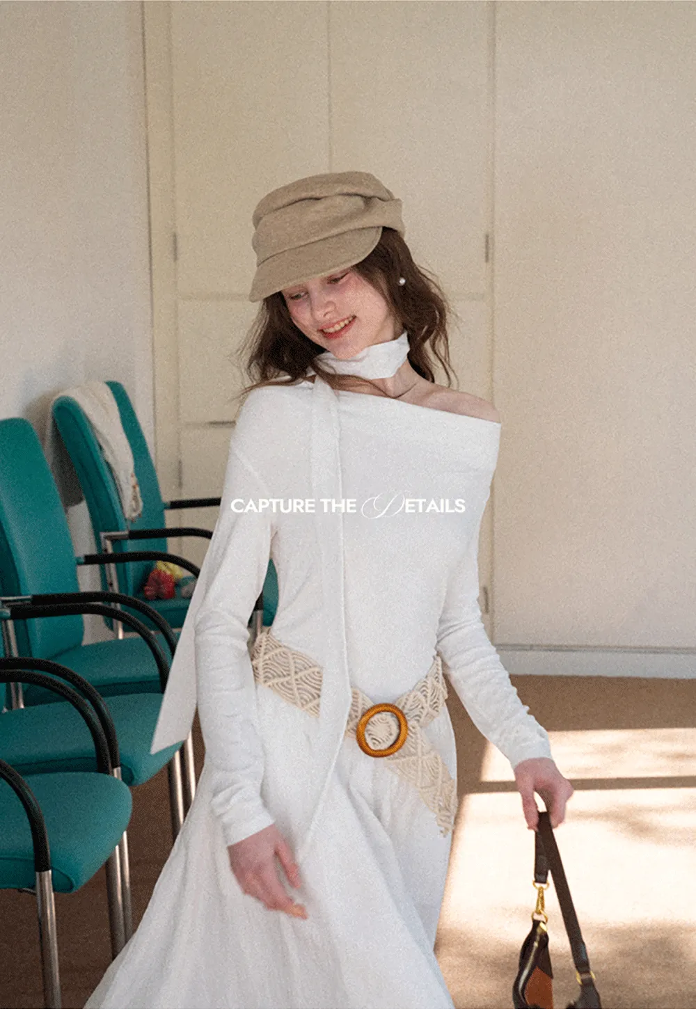 Elegant asymmetrical long sleeve dress with unique belt design