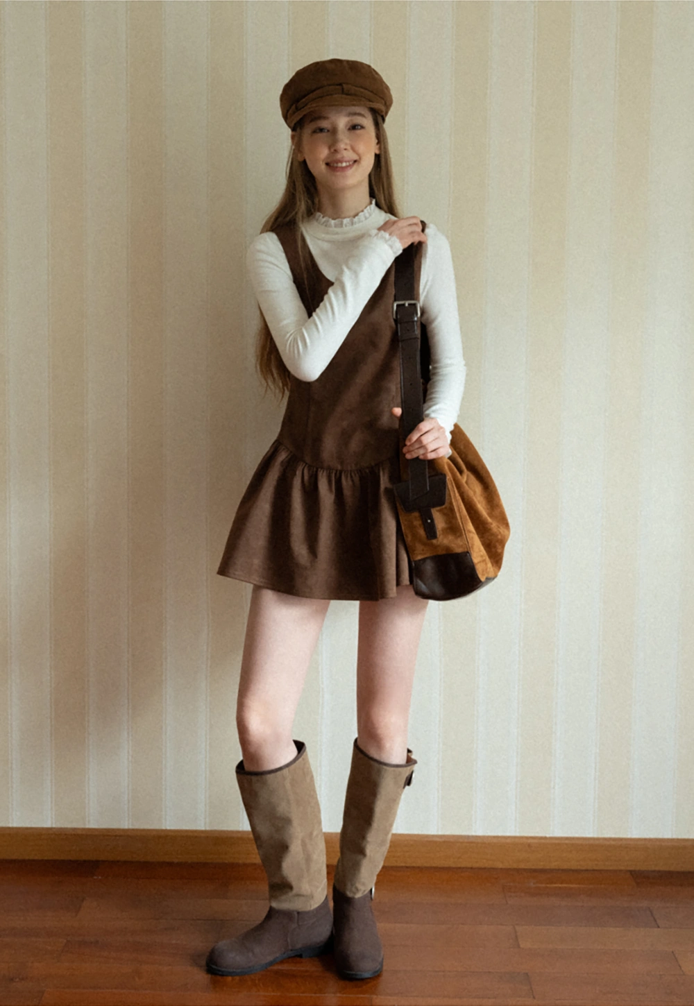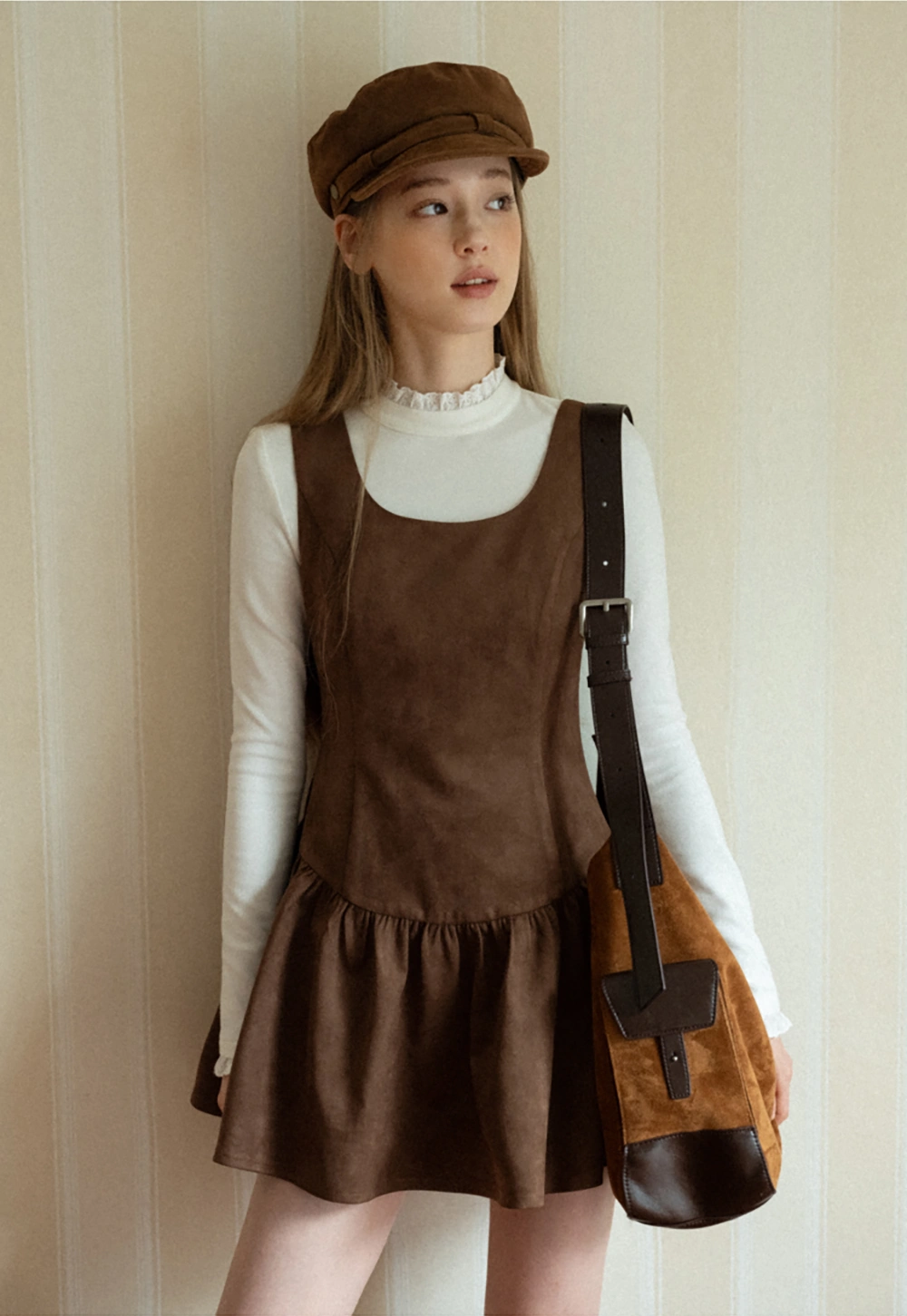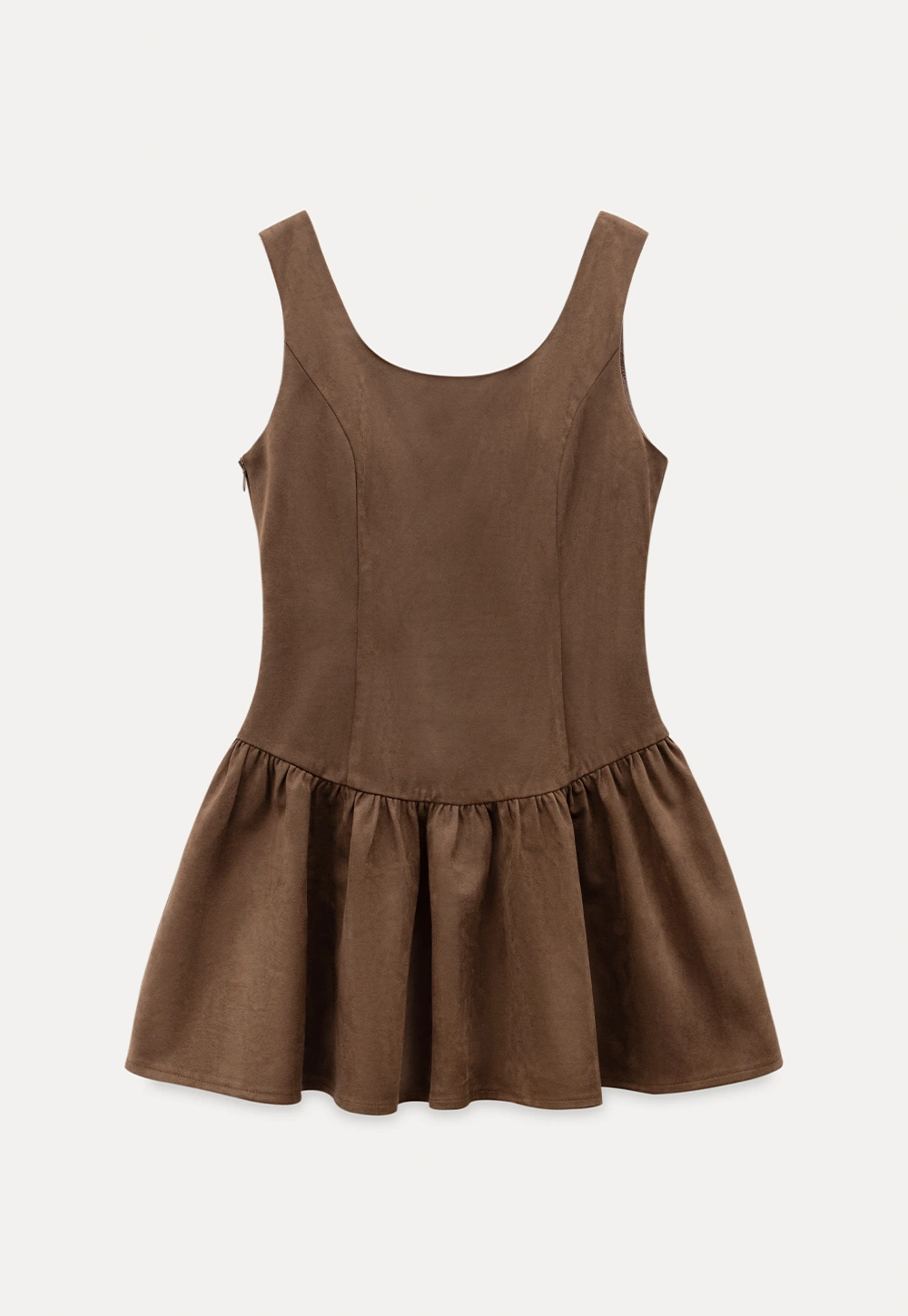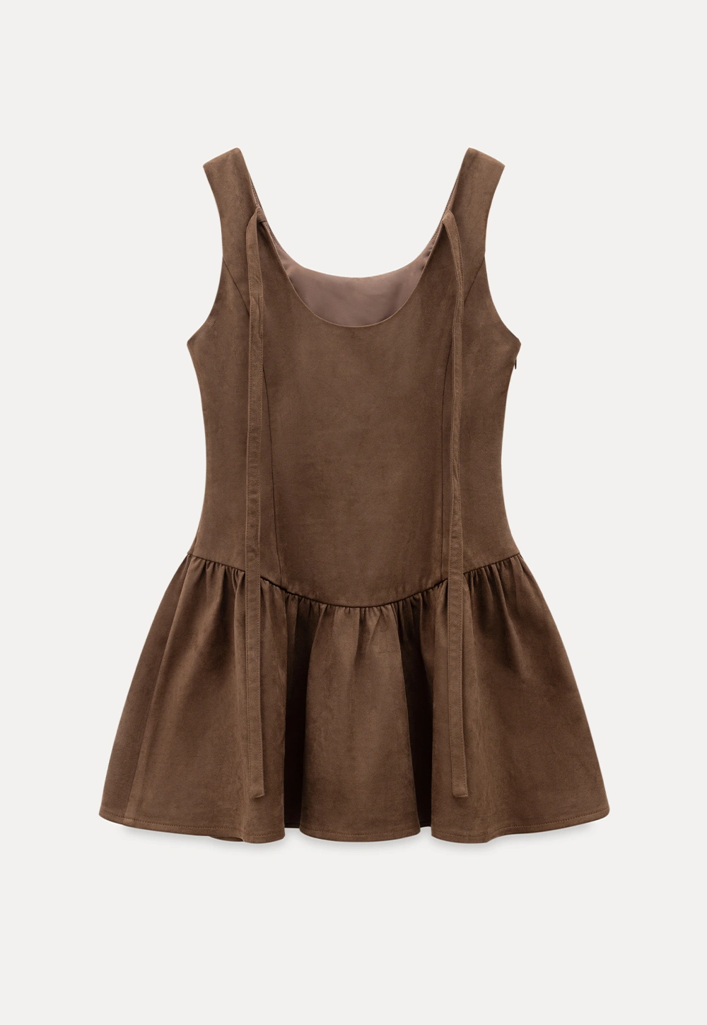 Women Brown Suede Sleeveless A-Line Dress with Tie Straps