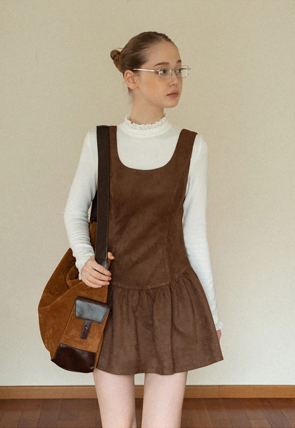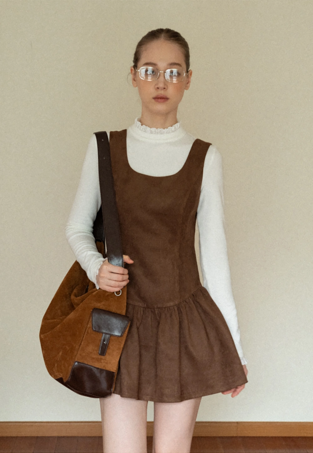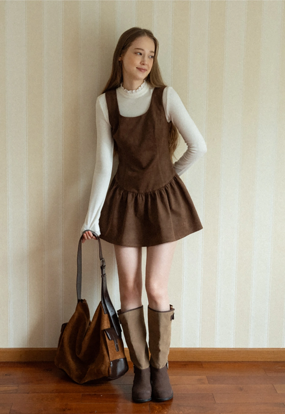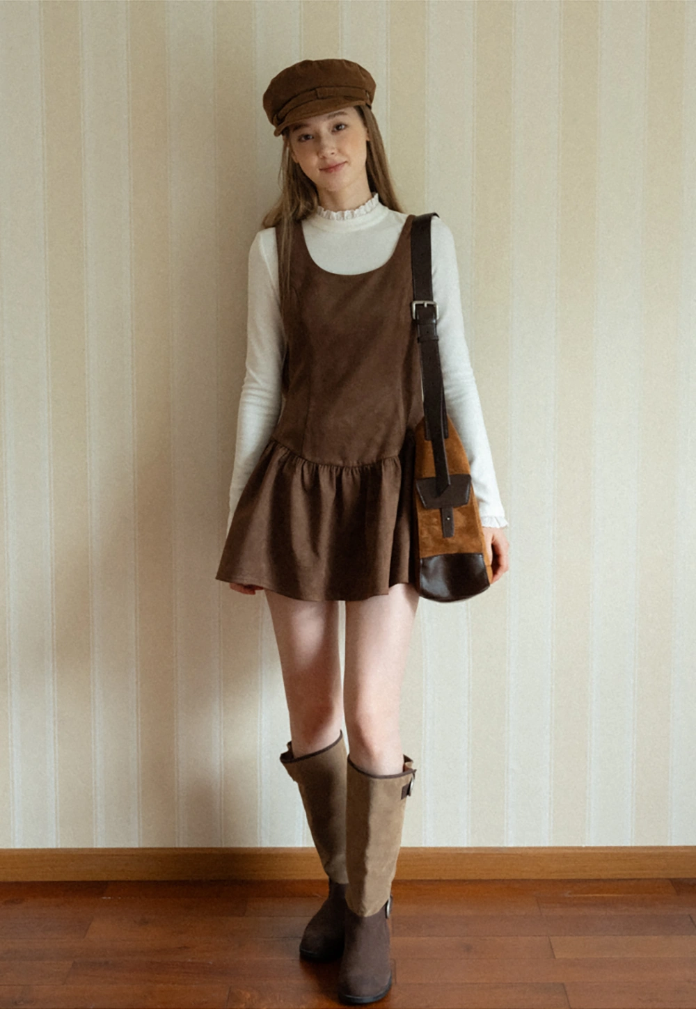 Women Brown Suede Sleeveless A-Line Dress with Tie Straps