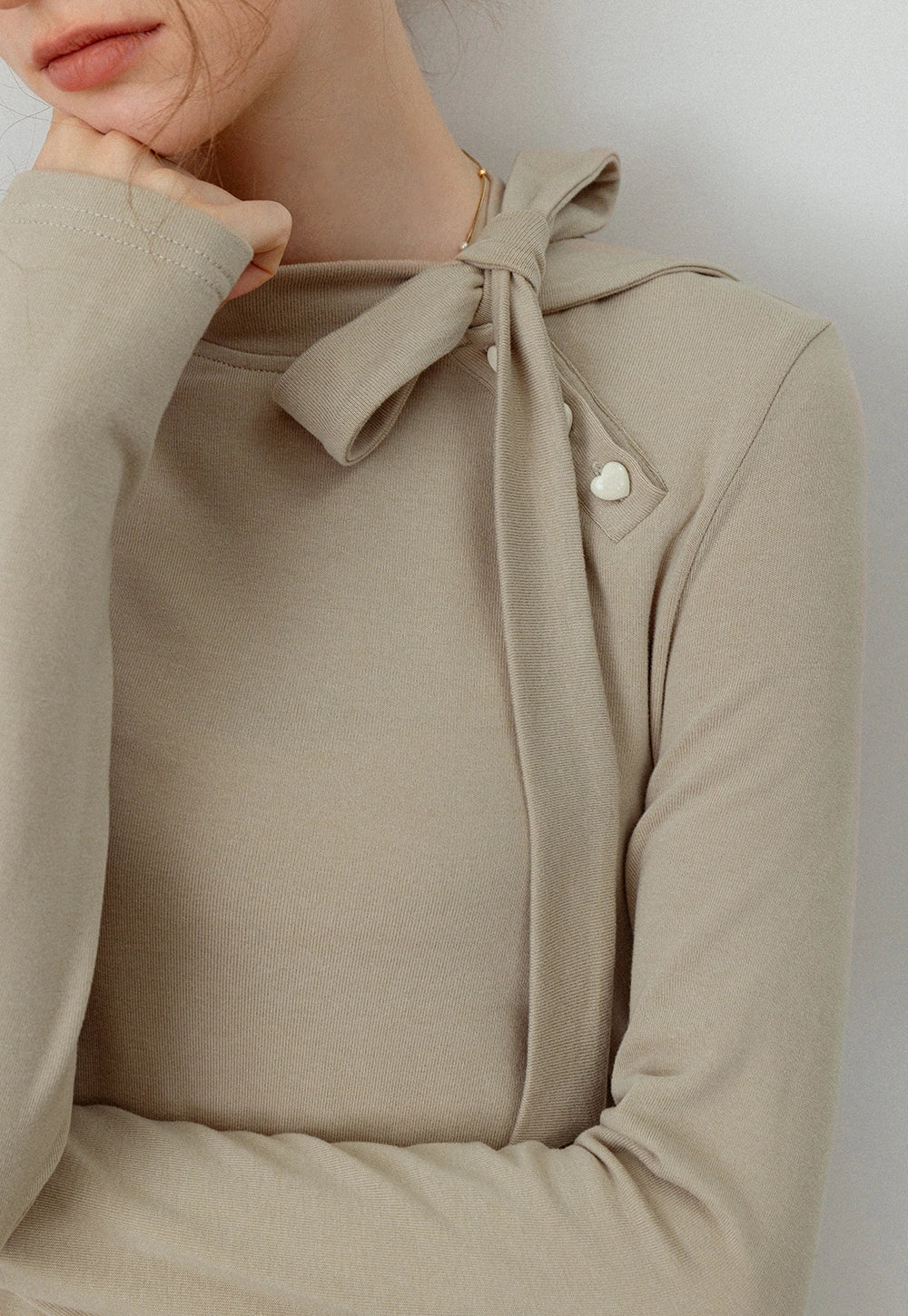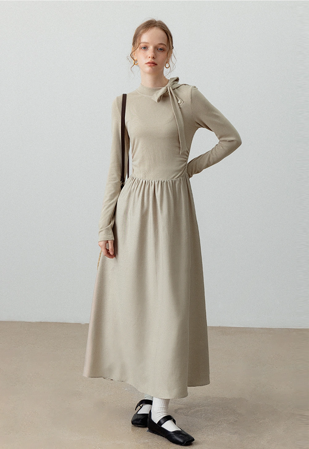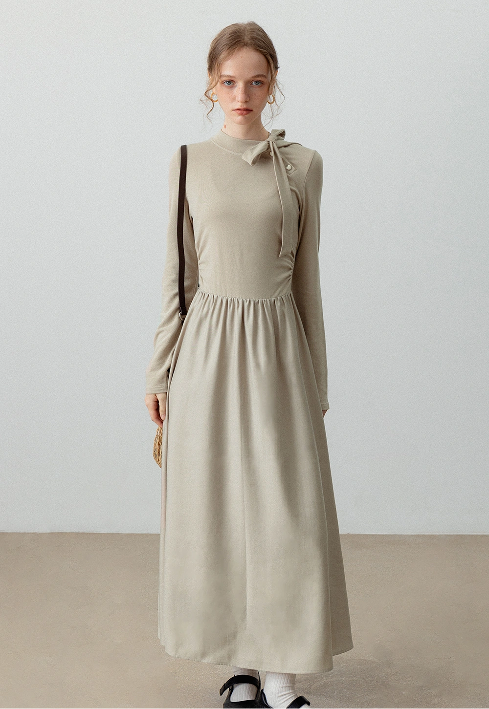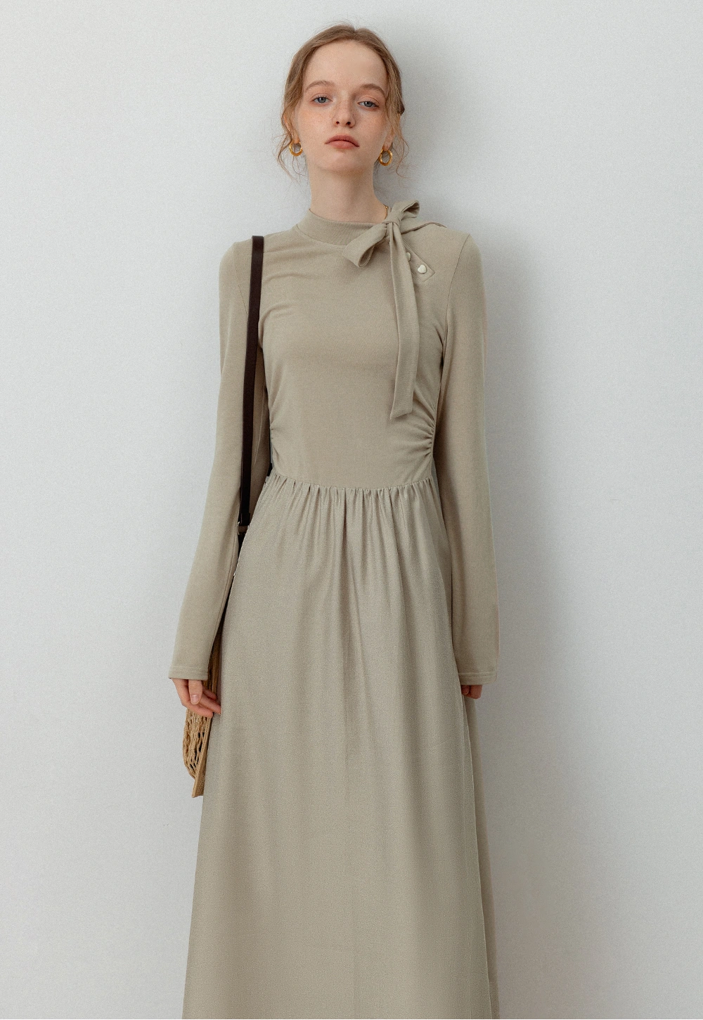 Women's Long-Sleeve Tie-Neck Midi Dress