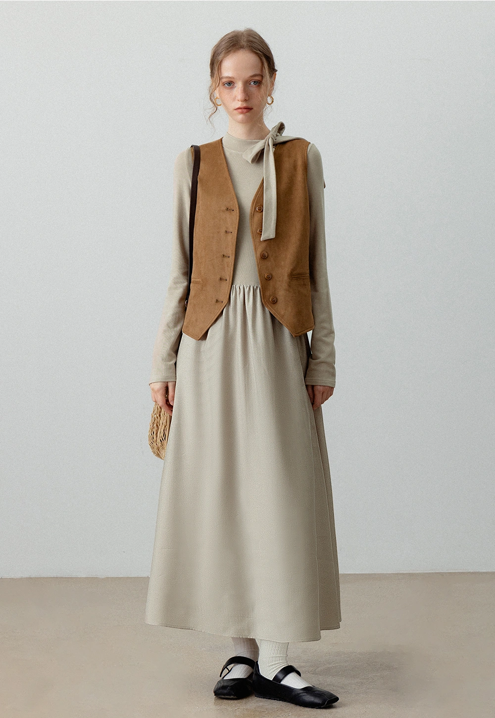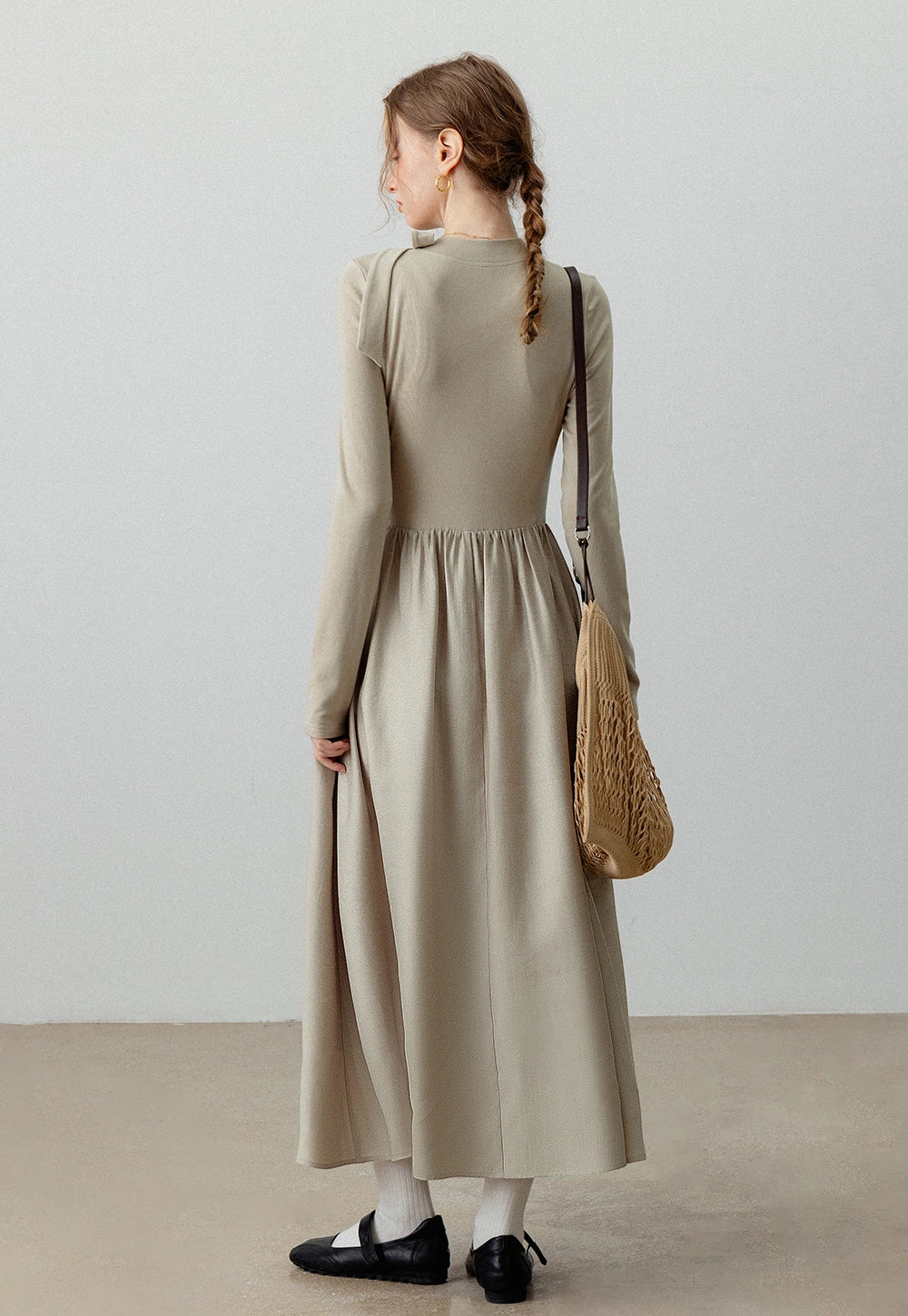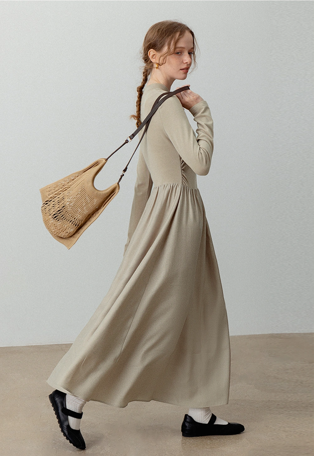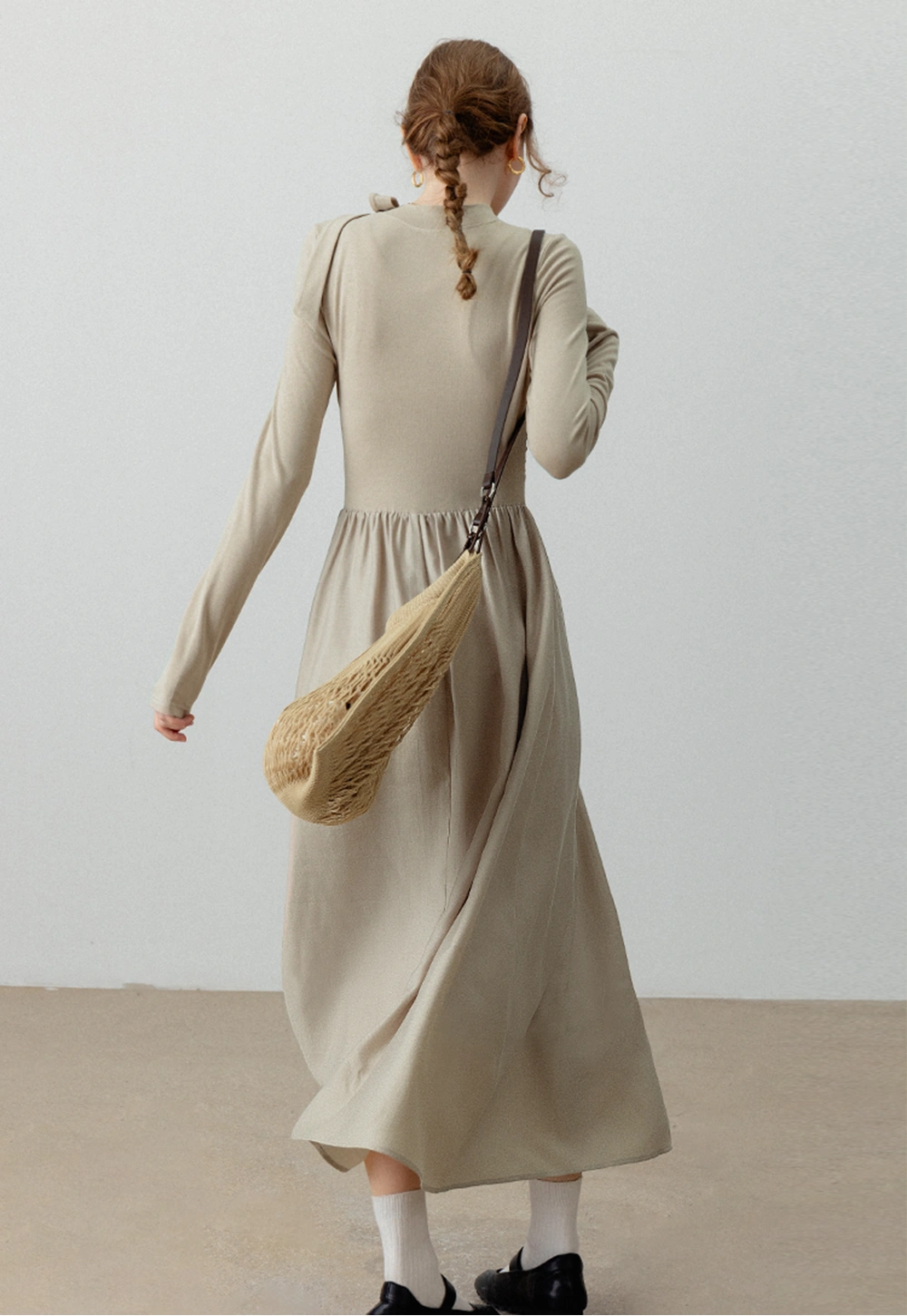 Women's Long-Sleeve Tie-Neck Midi Dress